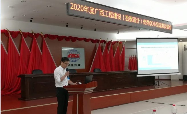該課題小組在2020年度廣西工程建設(shè)(勘察設(shè)計(jì))優(yōu)秀QC小組成果發(fā)表會(huì)上進(jìn)行課題成果匯報(bào)。