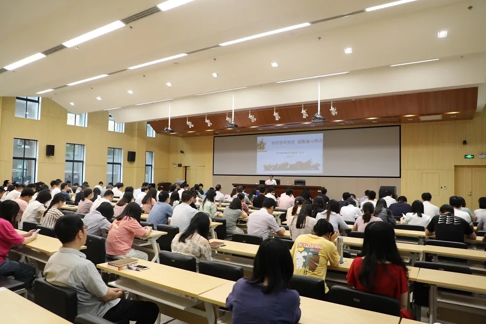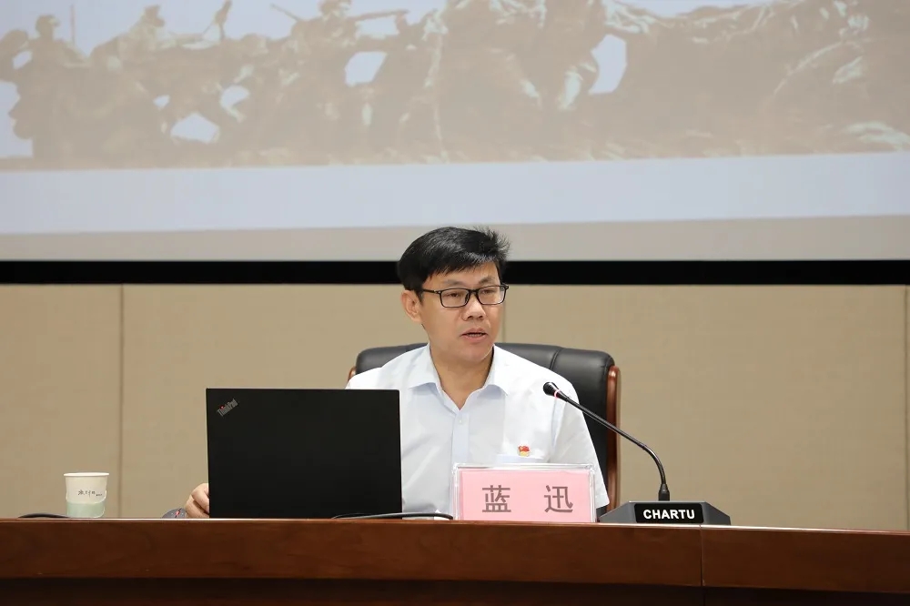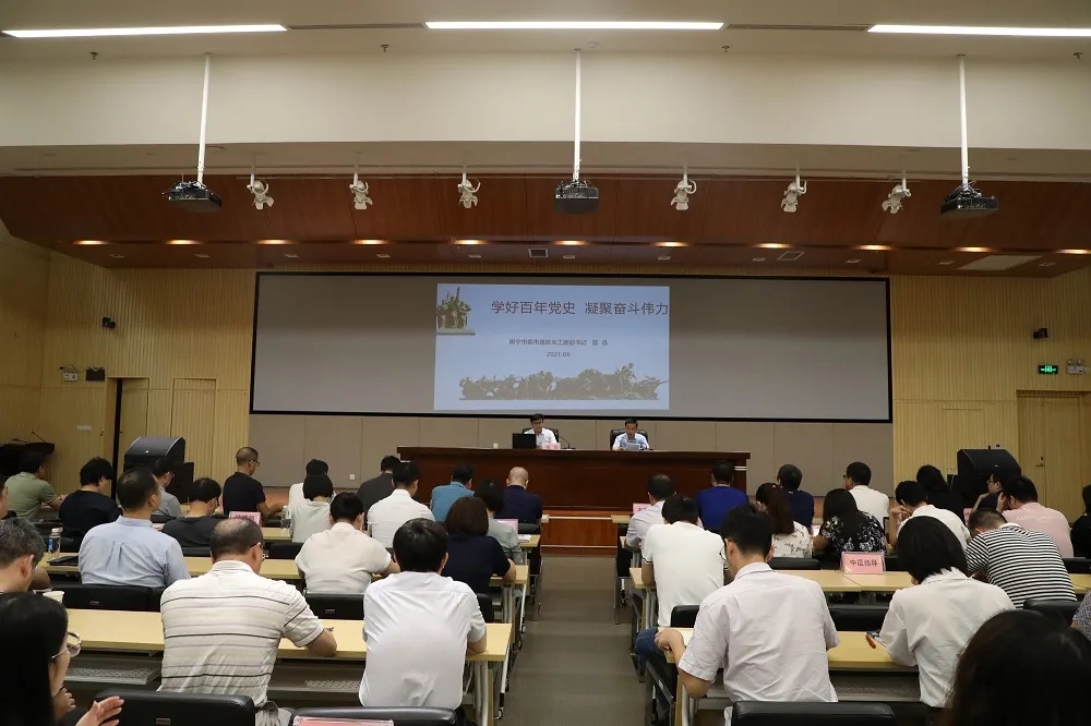 為幫助公司黨員干部更好地理解和開展黨史學(xué)習(xí)教育,6月24日,公司黨委邀請(qǐng)了南寧市委市直機(jī)關(guān)工委副書記藍(lán)迅為公司黨員干部上了一堂生動(dòng)的黨史學(xué)習(xí)教育專題黨課,公司黨委書記韋文學(xué)主持會(huì)議,公司全體黨員和中層以上領(lǐng)導(dǎo)干部近160余人現(xiàn)場(chǎng)聆聽了專題黨課。