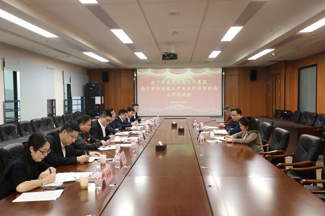 集團總經(jīng)理、副董事長馮江泉對何建匯局長一行的到來表示熱烈歡迎,同時衷心感謝經(jīng)開區(qū)行政審批局一直以來對我們集團的大力支持。馮江泉表示,經(jīng)開區(qū)打造的“媽媽式服務”作為一項惠企工程,以“先試先行、高效為民”為工作理念,大膽創(chuàng)新推出了“拿地即開工”等系列改革舉措,全力打造“政策最優(yōu),服務最好”的營商環(huán)境,這是廣大企業(yè)的福音,這種貼心的服務意識、真誠的服務態(tài)度,是我們集團學習的榜樣和楷模。作為一家從事設(shè)計咨詢服務的企業(yè),南寧市建筑規(guī)劃設(shè)計集團一定繼續(xù)提高服務意識,把好質(zhì)量關(guān),配合經(jīng)開區(qū)的各項工作,做好項目業(yè)主和審批局之間的橋梁,讓項目業(yè)主輕裝上陣,推動項目加速推進,更好地為經(jīng)開區(qū)的發(fā)展做貢獻。