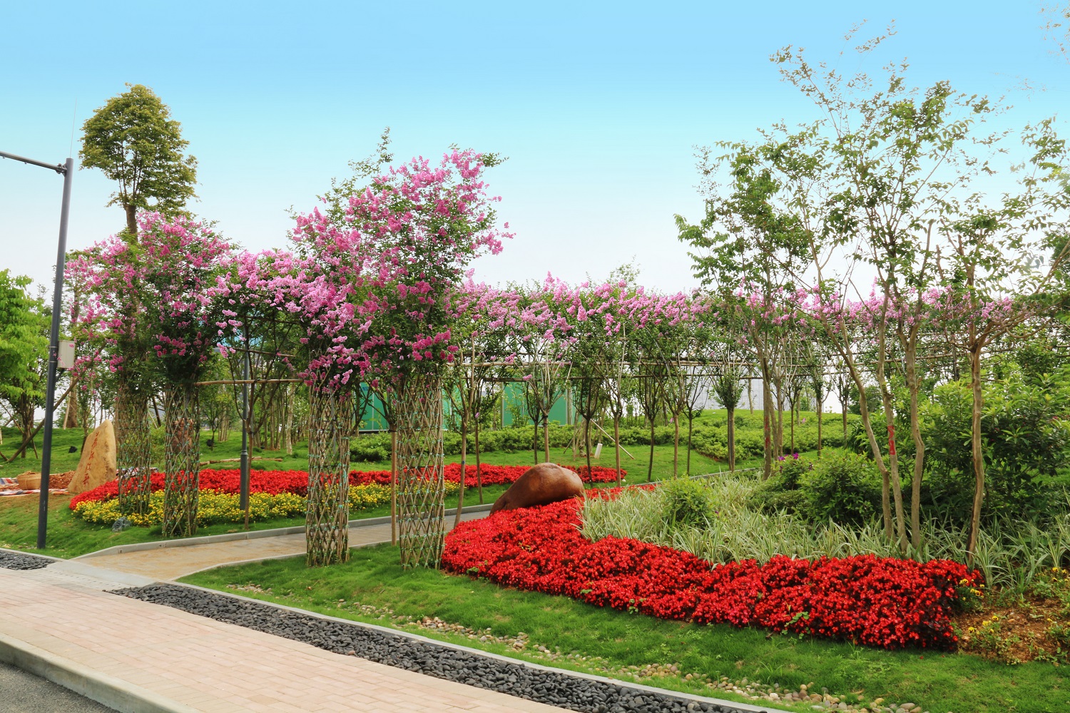 項(xiàng)目特色:設(shè)計(jì)因地制宜、依山就勢(shì),結(jié)合山地建筑設(shè)計(jì)、坡面生態(tài)修復(fù)等景觀手法解決現(xiàn)狀高差過(guò)大、土質(zhì)疏松等問(wèn)題,采用生態(tài)保護(hù)設(shè)計(jì)手法,結(jié)合山形地貌建設(shè)廣西首個(gè)紫薇專類園和南寧市首個(gè)戶外趣味山地自行車賽道;利用豎向變化設(shè)計(jì)全園雨水收集利用系統(tǒng),實(shí)現(xiàn)“海綿城市”構(gòu)想。