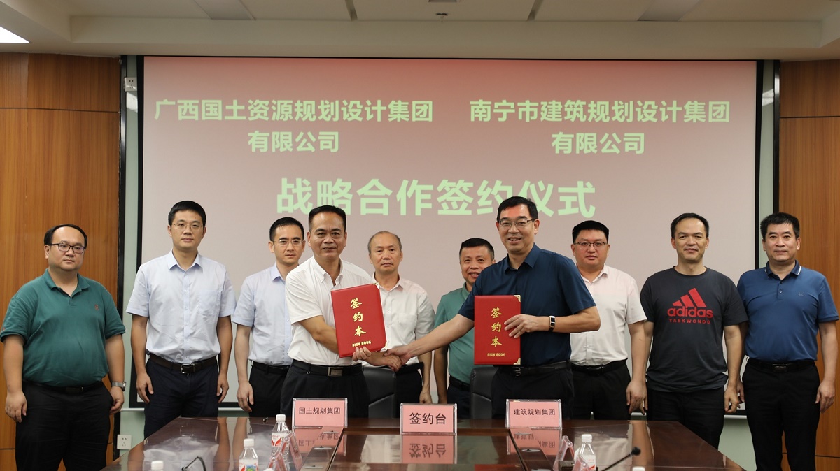 6月28日,南寧市建筑規(guī)劃設(shè)計集團有限公司與廣西國土資源規(guī)劃設(shè)計集團有限公司戰(zhàn)略合作簽約儀式在我集團舉行。集團黨委書記、董事長韋文學(xué)和廣西國土資源規(guī)劃設(shè)計集團黨委書記、董事長鄧強出席儀式并見證簽約,集團總經(jīng)理、副董事長馮江泉和廣西國土資源規(guī)劃設(shè)計集團總經(jīng)理、黨委副書記、副董事長魏玉平分別代表雙方簽訂戰(zhàn)略合作協(xié)議。