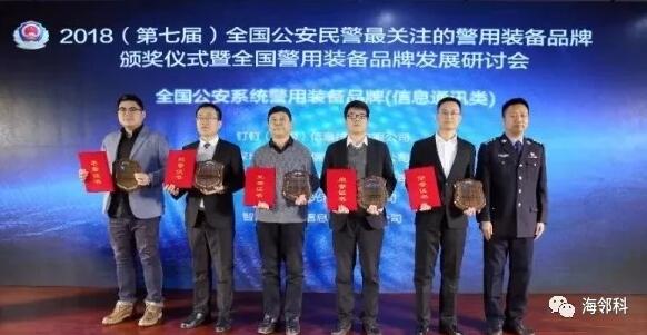 12月26日,2018(第七屆)全國公安民警最關(guān)注的警用裝備品牌頒獎儀式暨全國警用裝備品牌發(fā)展研討會在北京舉行。本次活動由中國警察網(wǎng)主辦,人民公安報社、公安部第一研究所、公安部第三研究所、公安部交通管理科學(xué)研究所、中國人民公安大學(xué)和中國警察協(xié)會支持,得到了各地公安機關(guān)的廣泛關(guān)注。經(jīng)過全國各地公安民警投票推選和專家評審,海鄰科最終獲得信息通訊類最受全國公安民警關(guān)注的警用裝備品牌獎項。