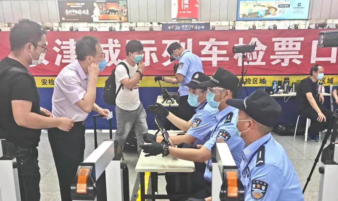 天津火車站和高鐵站的進(jìn)京二次安檢通道入口處,民警正在使用海鄰科公司的X3和X3Pro移動(dòng)警務(wù)終端,進(jìn)行信息采集和安全檢查。
