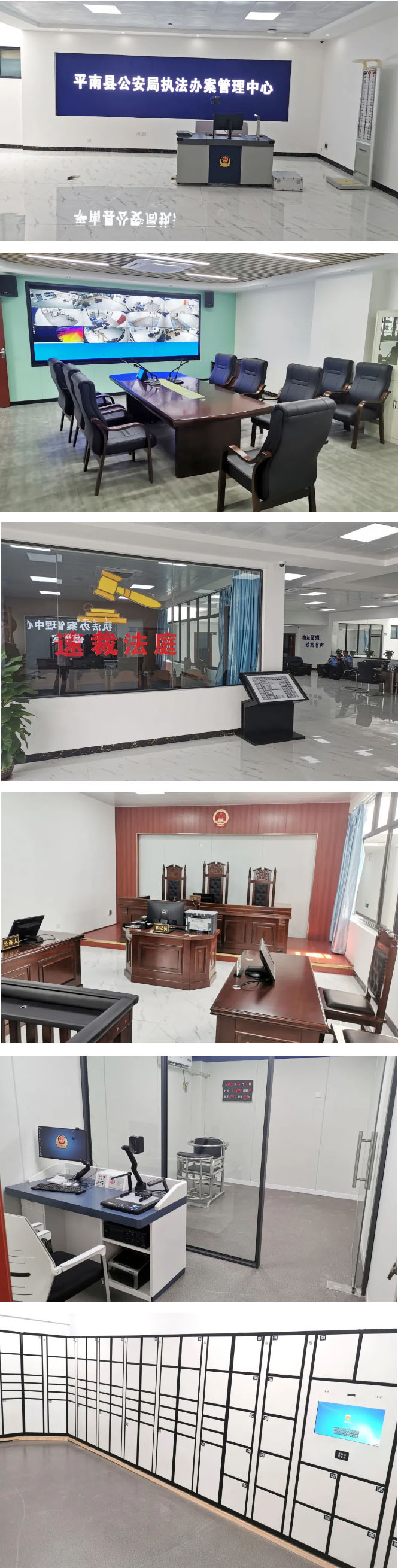 平南縣公安局智慧執(zhí)法辦案管理中心建有縣公安局執(zhí)法辦案管理中心、涉案財(cái)物管理中心、案件管理中心、政務(wù)服務(wù)大廳及樂群派出所等5個公安基礎(chǔ)項(xiàng)目。依托海鄰科先進(jìn)技術(shù)和成熟經(jīng)驗(yàn),以嚴(yán)格規(guī)范公正文明執(zhí)法為主線,以解決執(zhí)法突出問題為導(dǎo)向,構(gòu)建執(zhí)法管理、辦案區(qū)管理、案件卷宗管理和涉案財(cái)務(wù)管理“四位一體”執(zhí)法管理機(jī)制,打造“系統(tǒng)嚴(yán)密、規(guī)范高效”的執(zhí)法監(jiān)督管理體系。通過對“案”、“人”、“物”、“卷”、“場”、“視”,六要素的管理,打通“監(jiān)”、“管”、“警”、“辦”、“查”、“統(tǒng)”六環(huán)節(jié),形成對案件的沙盤式管理新模式,實(shí)現(xiàn)全要素、全過程、全領(lǐng)域管理和“閉環(huán)式”全覆蓋管控。同時,與法院合作,在辦案中心建設(shè)有速裁法庭,可以快速處理符合速裁條件的案件,提升效率。