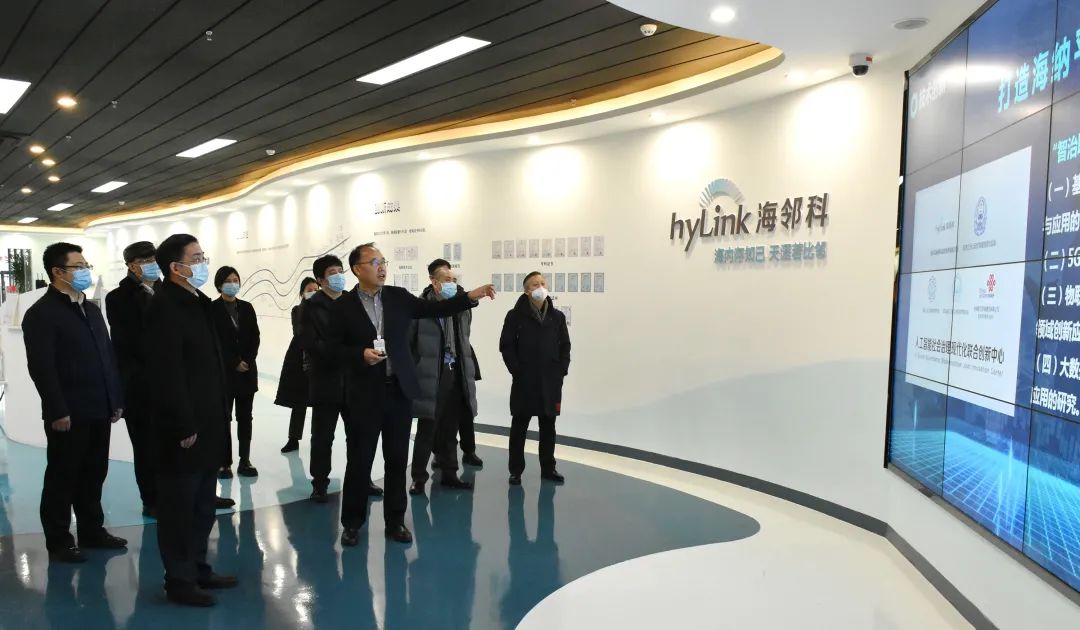 領(lǐng)導(dǎo)一行在海鄰科物聯(lián)網(wǎng)研發(fā)基地調(diào)研