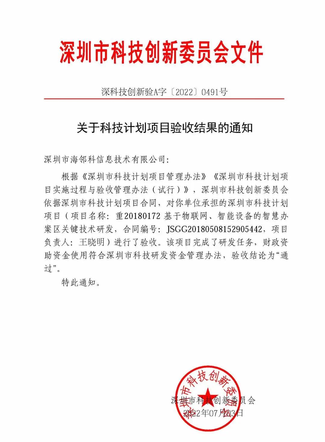 據(jù)悉,深圳市科技創(chuàng)新委員會根據(jù)《深圳市科技計劃項目管理辦法》、《深圳市科技計劃項目實施過程與驗收管理辦法(試行)》等有關(guān)規(guī)定,2022年第3批科技計劃驗收通過和結(jié)題160個項目,深圳海鄰科公司項目名列其中,這是深圳市科技創(chuàng)新委員會對海鄰科關(guān)鍵技術(shù)研發(fā)的高度認(rèn)可和肯定。