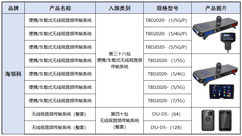 多年以來,海鄰科公司連續(xù)多款產(chǎn)品入圍公安部警用裝備采購中心,廣受用戶喜愛和好評。此次入圍的是“便攜/車載式無線視音頻傳輸系統(tǒng)”和“無線視音頻傳輸系統(tǒng)”,主要用于智慧警務(wù)的應(yīng)用,移動執(zhí)法更高效。