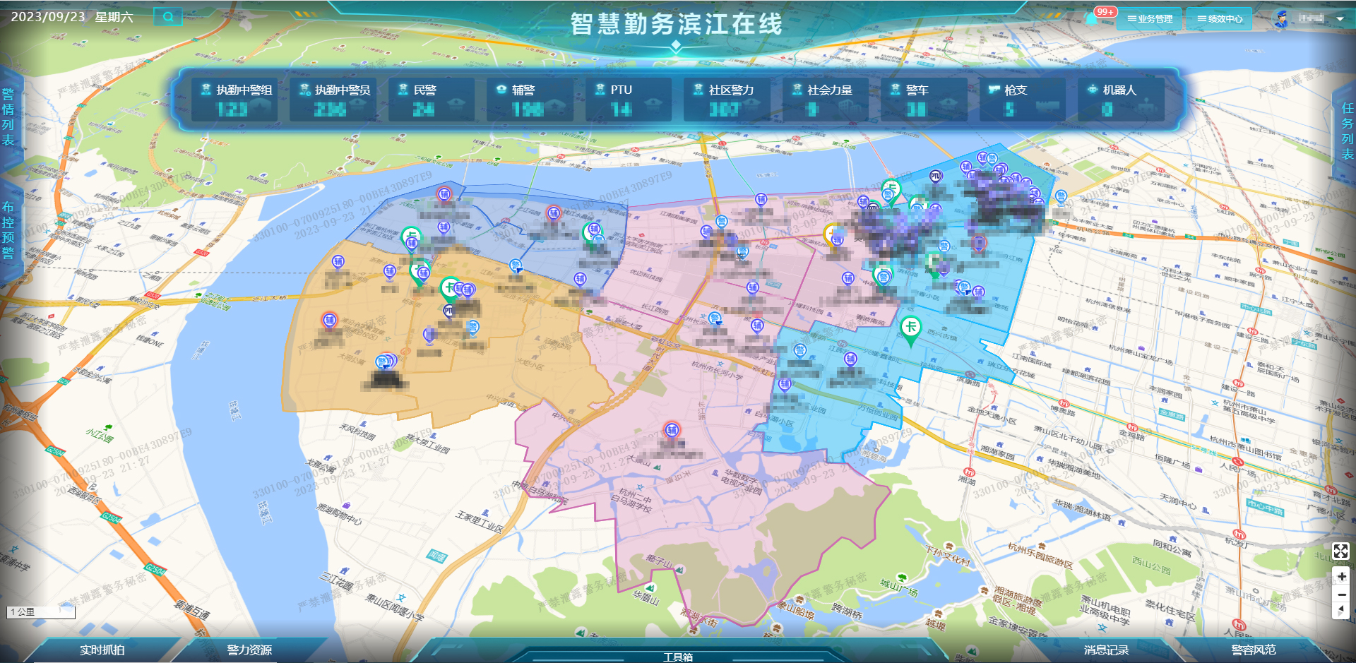 在杭州亞運會進行時,“濱江勤務(wù)助手”APP 累計上線民警近萬次,通過可靠的秒級定位更新頻率以及亞米級定位精度,以崗位任務(wù)、警力位置實時上圖的模式,實時展示各個關(guān)鍵部位人員勤務(wù)在崗情況,協(xié)助指揮中心扁平化指揮,完成警力快速調(diào)配,指令一鍵到達的警務(wù)指揮效果,精準高效。