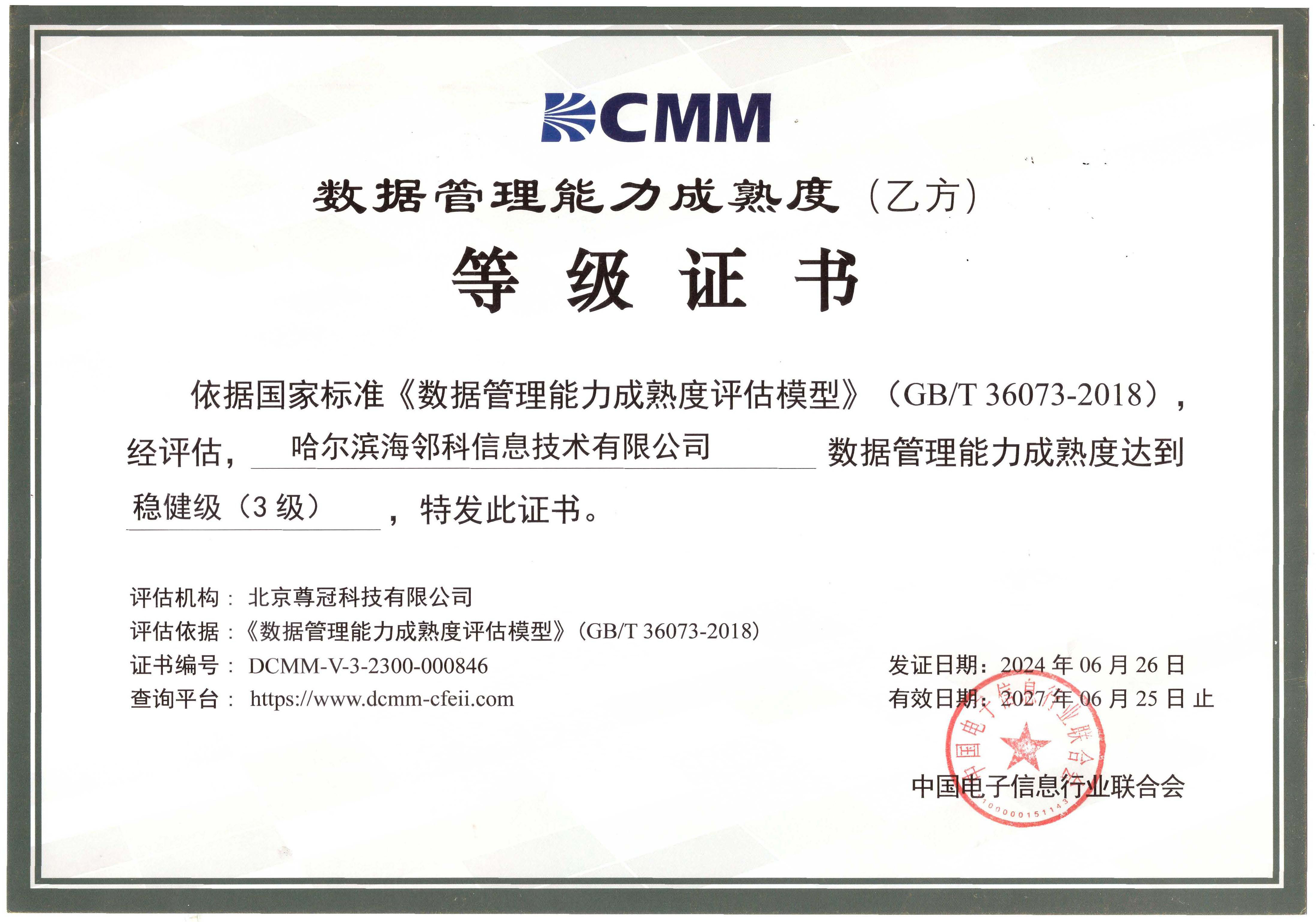 近日,依據(jù)國(guó)家標(biāo)準(zhǔn)《數(shù)據(jù)管理能力成熟度評(píng)估模型》(GB/T36073-2018),經(jīng)嚴(yán)格評(píng)估和審查,海鄰科公司獲評(píng)DCMM數(shù)據(jù)管理能力成熟度穩(wěn)健級(jí)(3級(jí))認(rèn)證,標(biāo)志著海鄰科數(shù)據(jù)治理在行業(yè)中已具備雄厚的實(shí)力和領(lǐng)先地位。
